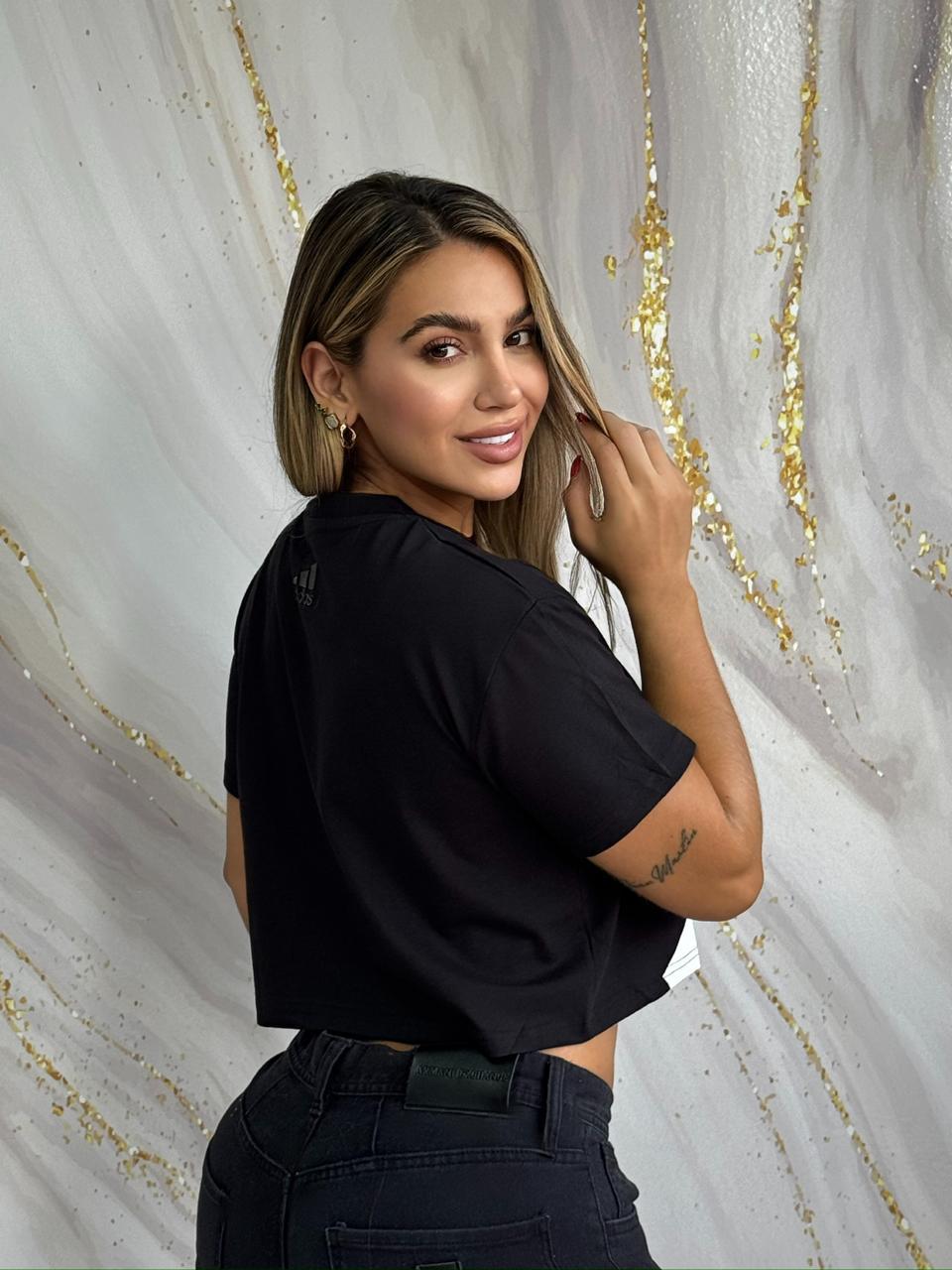 Crop top blanco de diseño moderno con gráfico frontal geométrico. Confeccionado en algodón suave, ofrece un ajuste cómodo y un estilo urbano limpio, ideal para looks casuales y contemporáneos.