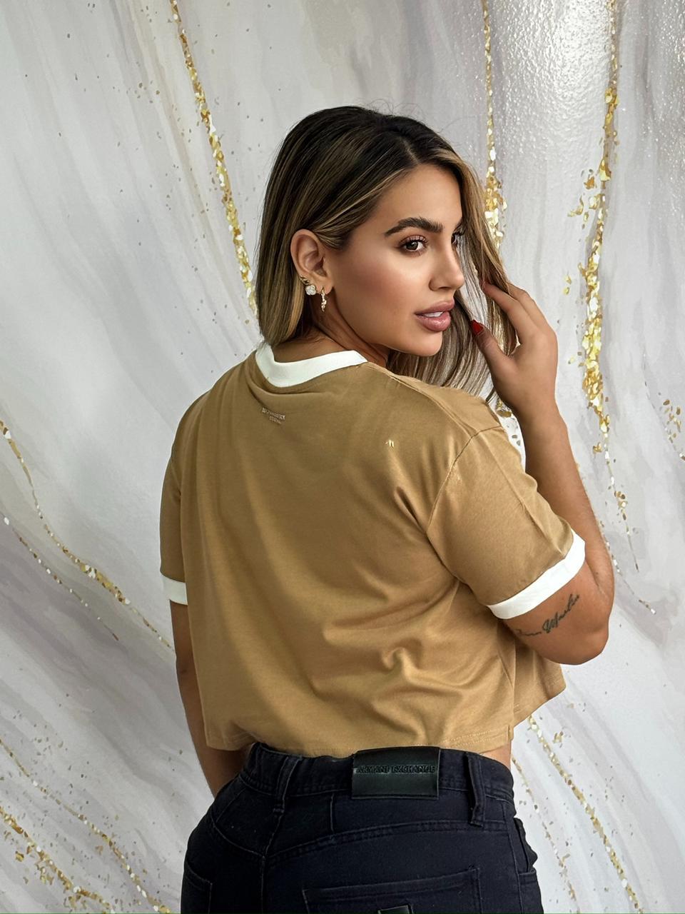 Crop top de diseño minimalista con corte recto y cuello redondo en contraste. Confeccionado en tela suave y ligera que brinda un ajuste cómodo y favorecedor. Ideal para looks urbanos y casuales, fácil de combinar con jeans, faldas o joggers para un estilo moderno y versátil.